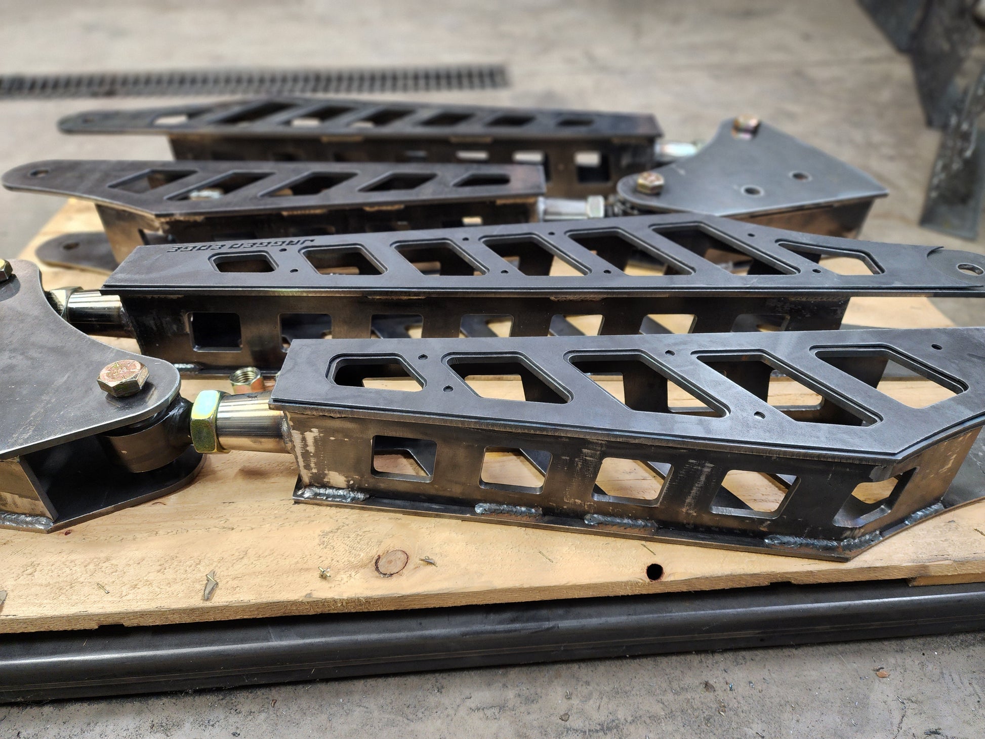 Looking to improve the ride of your Ford Superduty? Maybe just looking for a kit to replace ypur factory radius arm with while adding some color to the underneath of the truck. Look no further than these beefy 4 link bars and drop down brackets.